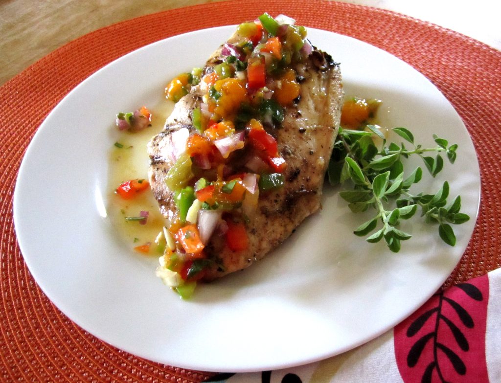I tossed a few split, seeded jalapenos on the grill alongside the salmon and they were the perfect accompaniment to the glaze, which is not too sweet nor too hot.  No my friends, it is perfection brushed on a beautiful piece of deep pink-orange salmon.  Remember the health benefits of salmon, which is full of Omega 3 fatty acids.  It’s good for your heart, your eyes, your brain and nerves.  Salmon is also rich in some essential minerals such as iron, calcium, selenium, phosphorus and vitamins like A and D.  Among allergy sufferers there is a widespread belief that locally produced honey can alleviate symptoms.  It’s said that a spoonful a day can help build immunity to local allergens.  No matter the reason you may be eating salmon or honey the following recipe delivers a delicious meal.