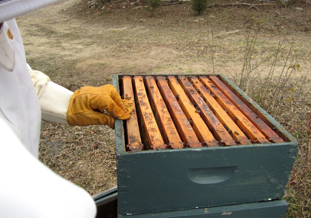 Yesterday was a new adventure for me in the skills of beekeeping.  For the first time I was able to open my hive, without Mr. Floyd’s presence.  He’d said, “you ‘ll need to do it by yourself sometime…”.  What he didn’t know is, I’ve been keen for this opportunity ever since my girls moved in.